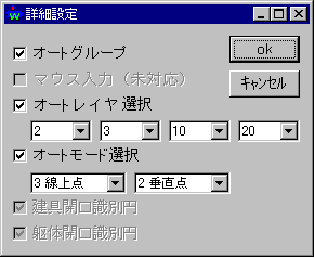 オートレイヤ選択をONで実行すると、自動的に選択 ※1 レイヤ2・3・10・20だけに反応します 最大4つ迄設定できます、4つ以下の場合0を設定します オートレイヤ選択がONの場合、サブメニューSASの右側「L」が表示されます |