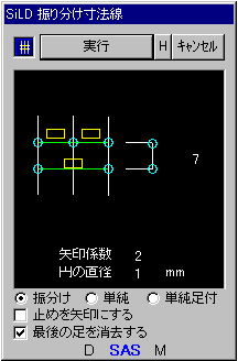 | 寸法線シリーズ [ 振り分け寸法線 ] コマンド | ||||