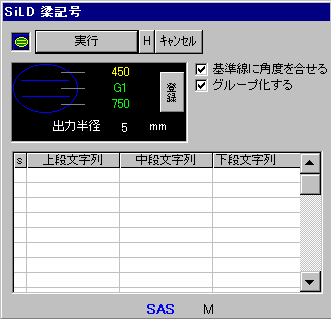 ・セットボタン(S)をクリックするだけで、簡単に梁記号を作図できます ・梁記号名を100タイプまで登録できます (登録ボタンをクリックするだけで 自動登録されます) ・円の大きさを任意に設定できます (円の大きさは登録されません) ・基準線に合わせて記号に角度がつけられます ・グループ番号が、記号を作図する度に自動で割付けられます |