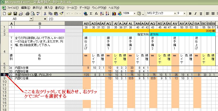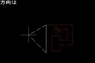step3 1,2の2つの点を指定すると、方向を聞いてきます、外部又は指定する方向に開いて指定します、右図では白い縦の線の左側が、外側または指定方向になります。 | ![]() |